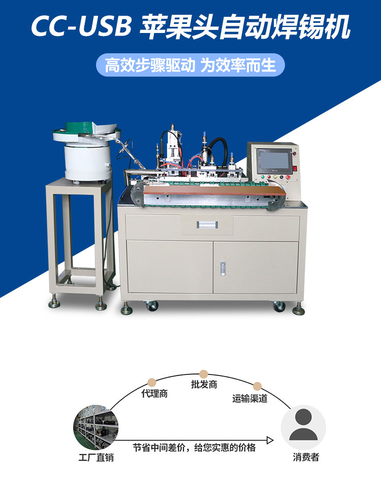 USB自動焊錫機,主要用于USB線纜長體A公、短體AM、MINI5PIN、MICRO5PIN的焊接,由振動盤自動供料、再分線、拉線、切平、剝皮、
