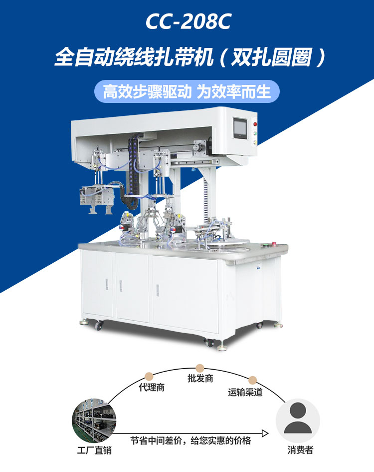 本扎線機(jī)是針對需要扎成圓圈型的客戶而定制的機(jī)器,用機(jī)器完成“O”型線的繞線扎帶工作。